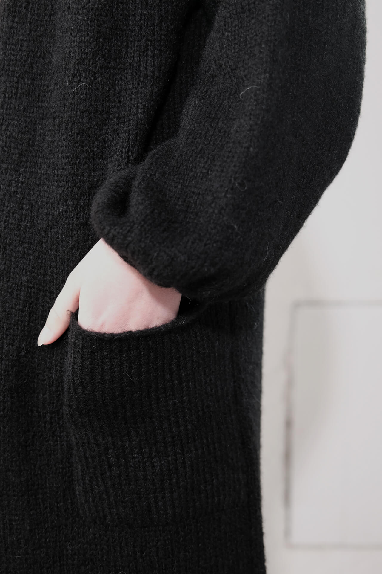 Unsere amon 'fluffy puffed sleeve coat' ist eine kniellange Strickjacke mit überschrittenen Schultern. Sie hat Ballonärmel und aufgesetzte Taschen in der vorderen Mitte.