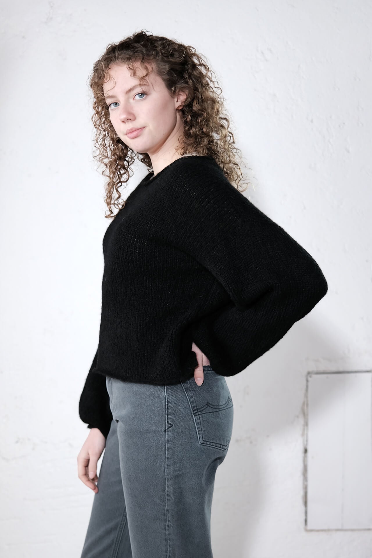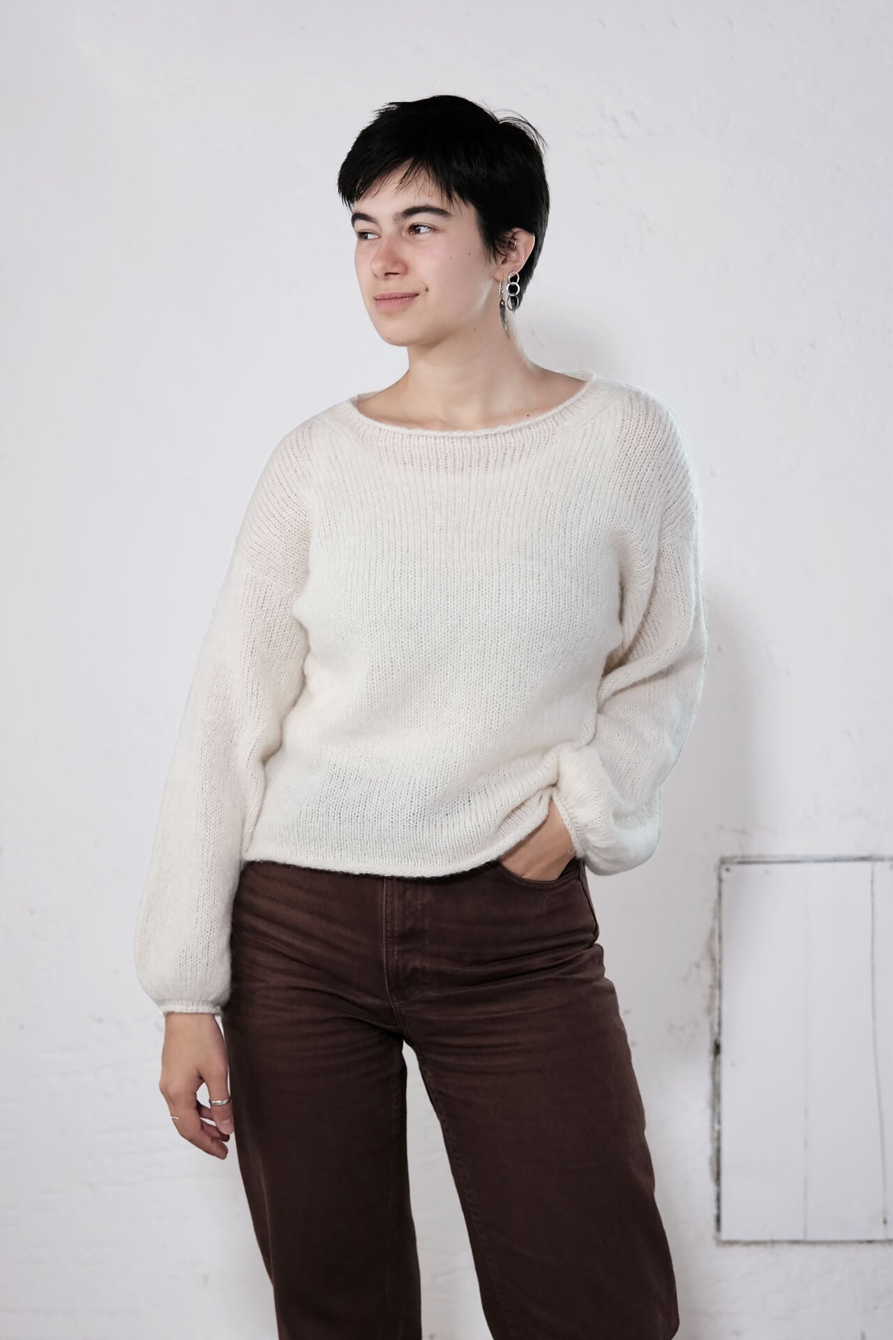 Der 'fluffy puffed sleeve' wurde in Prien am Chiemsee designt und im Chiemgau auf einer Handstrickmaschine gefertigt.