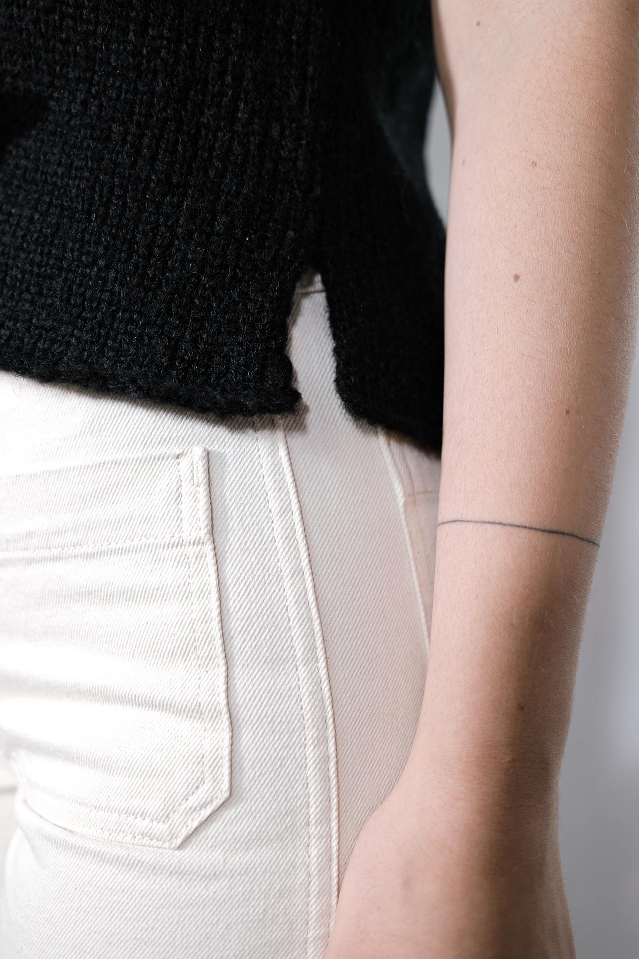 Unser 'fluffy sleeveless' ist aus 54% Baby Alpaca, 24% Seide und 22% Super Kid Mohair. Deswegen empfehlen wir dir dein Kleidungsstück am besten kalt und mit flüssigem Wollwaschmittel im Wollprogramm zu waschen. Achte darauf, dein Kleidungsstück möglichst alleine zu waschen, um zu viel Faserreibung zu vermeiden. Eine genaue Anleitung zum Waschen von Wollprodukten findest du hier.
