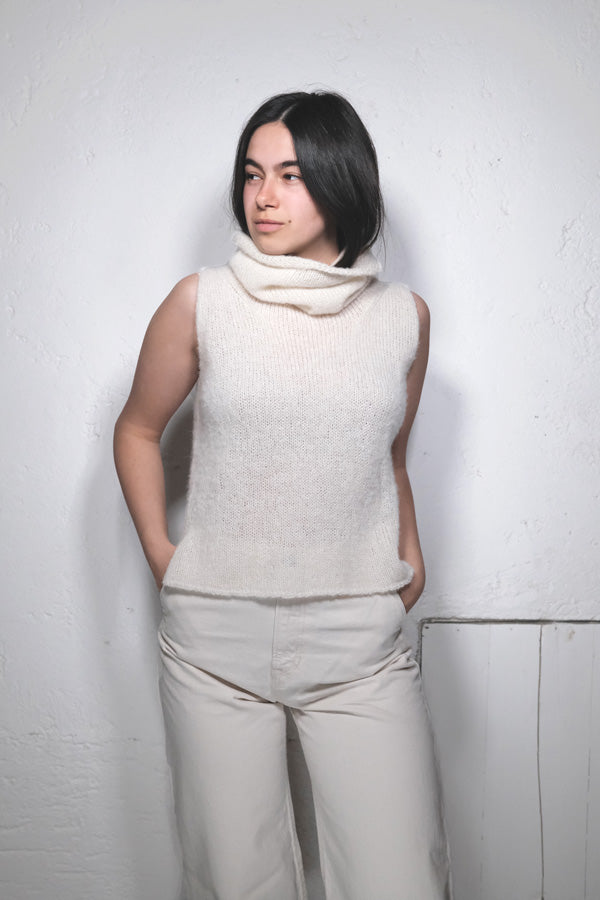 Der amon 'fluffy sleeveless' ist ein ärmelloses Top mit Rollkragen in geradem Schnitt und seitlichen Schlitzen.