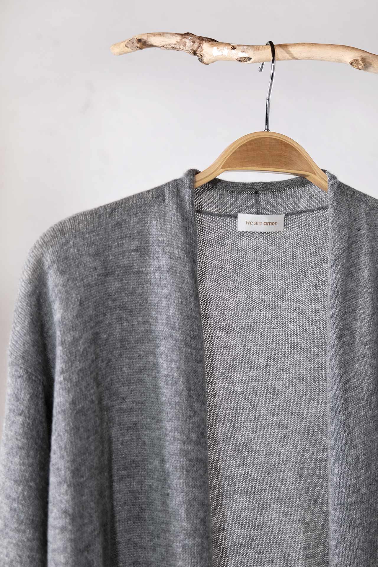 Die amon 'kimono coat' wurde in Prien am Chiemsee designt und im Chiemgau auf einer Handstrickmaschine gefertigt.