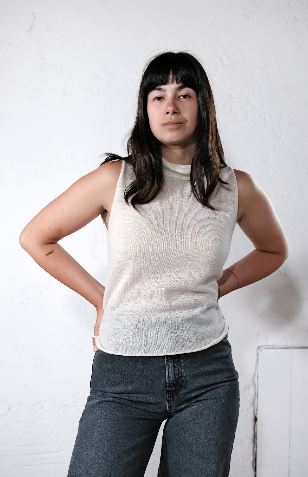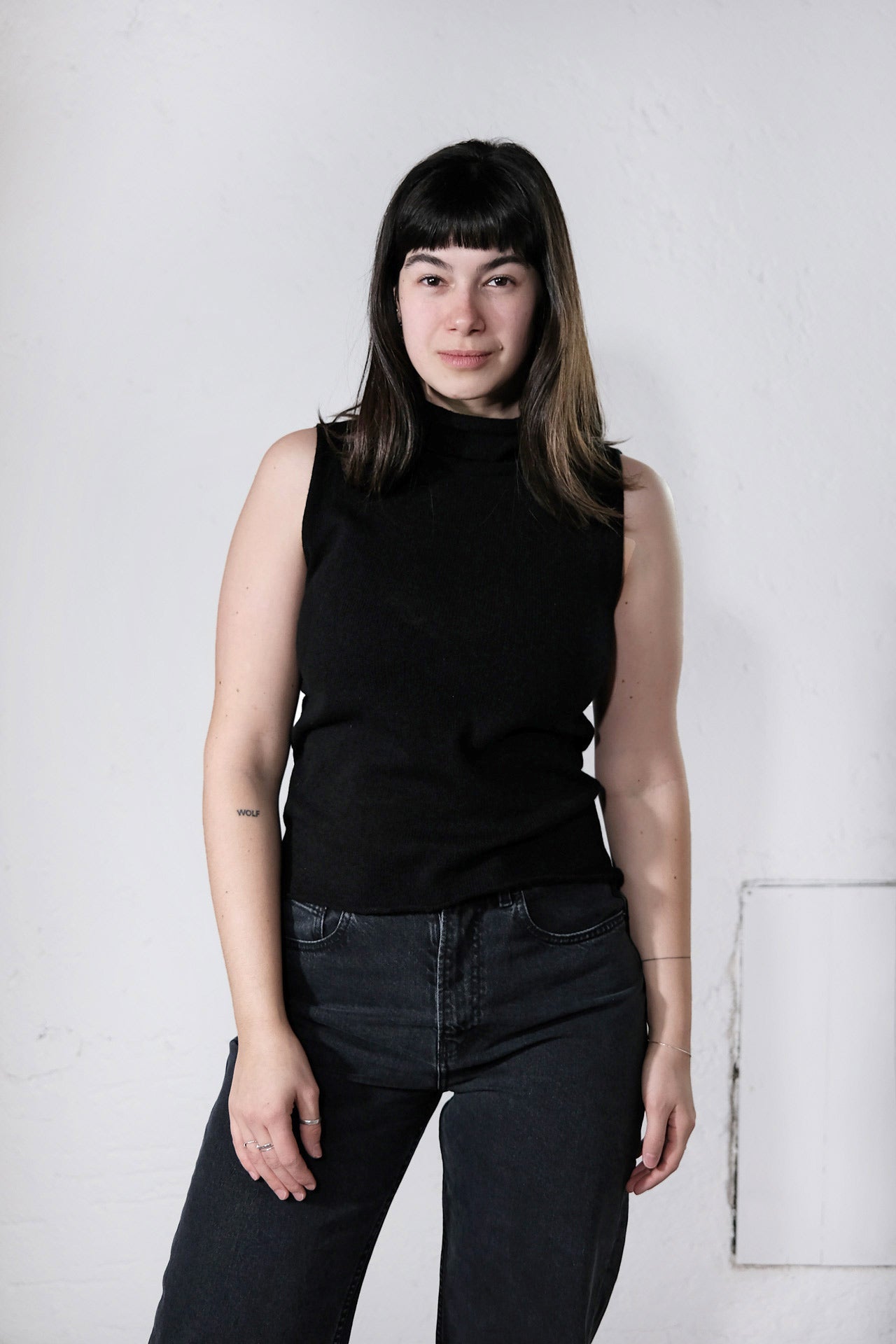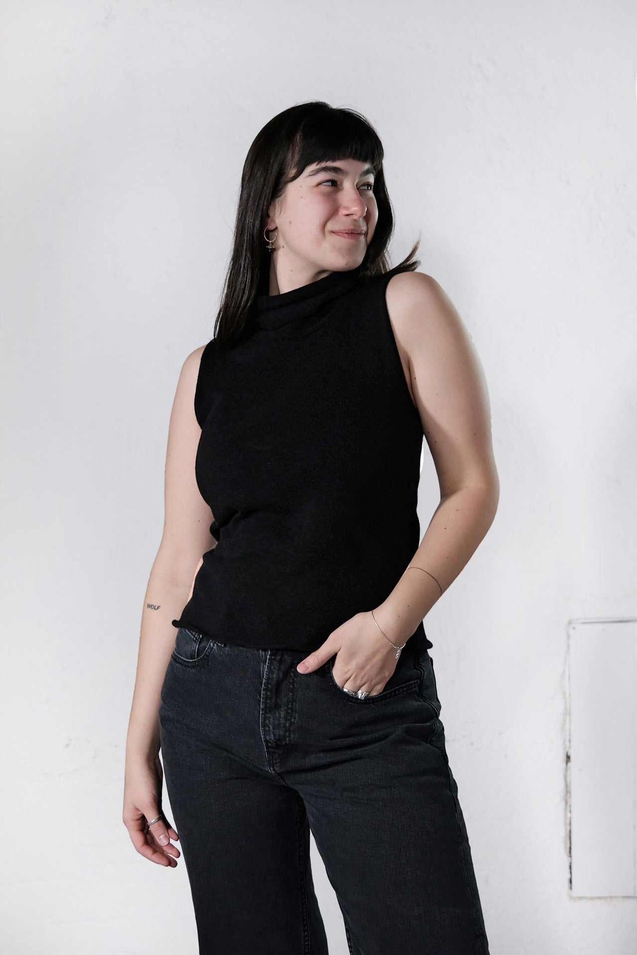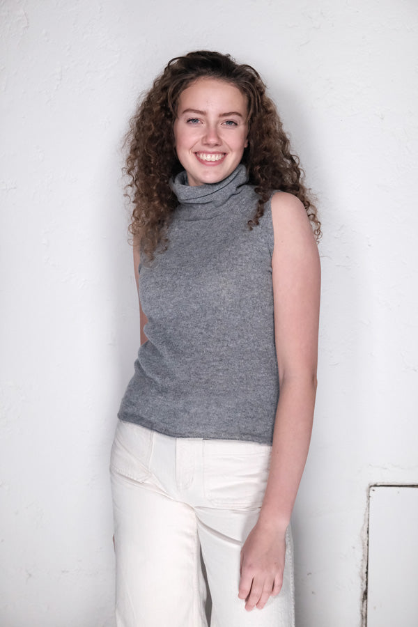 Das amon Turtle Top ist ein ärmelloses, fein gestricktes Top mit elegantem Rollkragen.