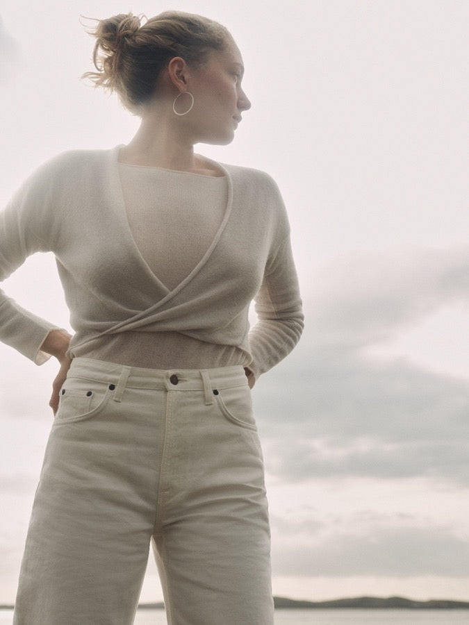 Unsere amon 'wrap cloud' ist aus 100% Kaschmir. Deswegen empfehlen wir dir die Wickeljacke bei maximal 30°C im Wollwaschgang mit flüssigem Wollwaschmittel zu waschen. Achte darauf nicht mehr als zwei Artikel gleichzeitig zu waschen. Mehr über das Waschen von Kaschmir-Produkten hier.